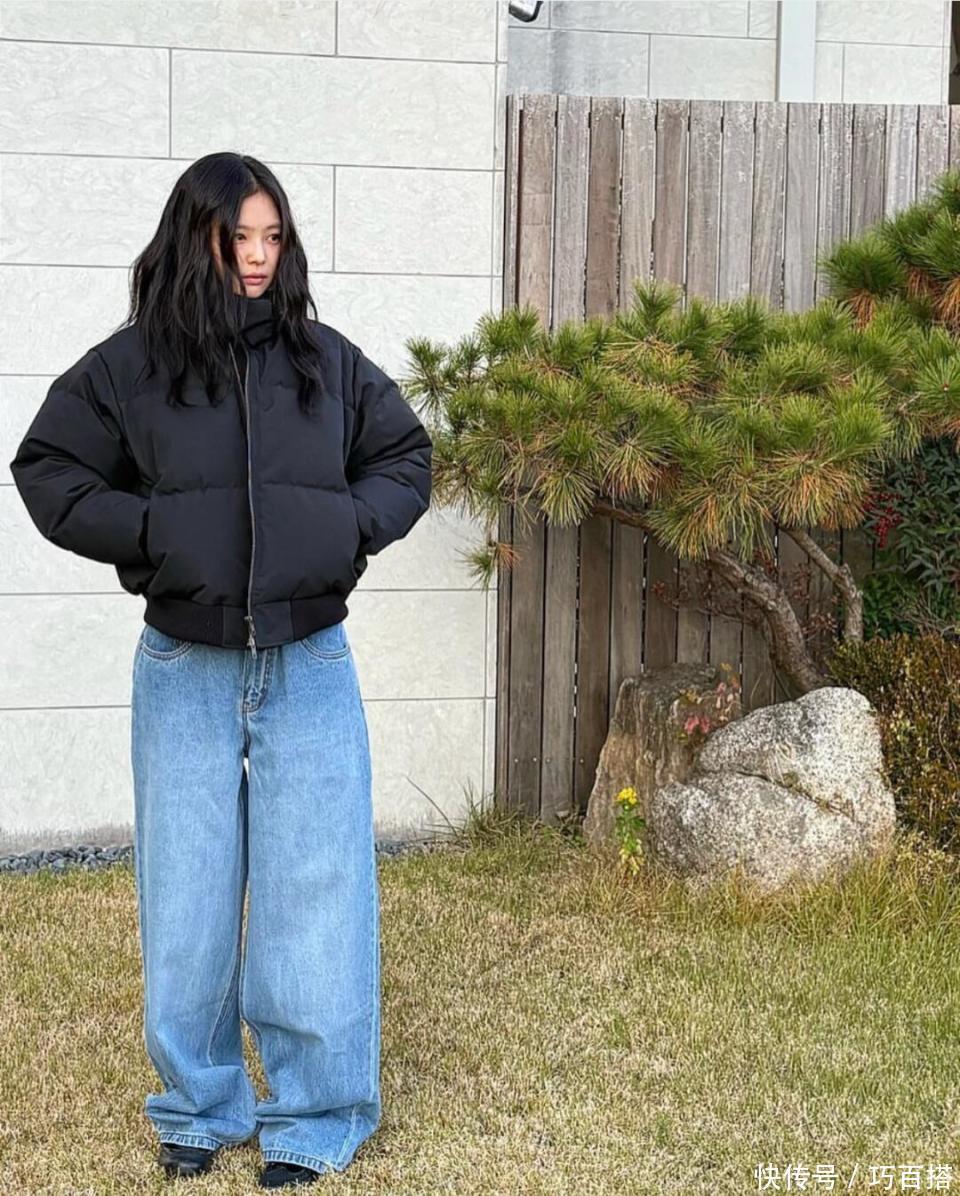 除此之外,水洗蓝牛仔裤还有常规阔腿设计,这类最基本的版型设计,可以保留修饰腿型的能力,又能迎合慵懒休闲氛围,不压个子、不显腿短,时髦又实用。