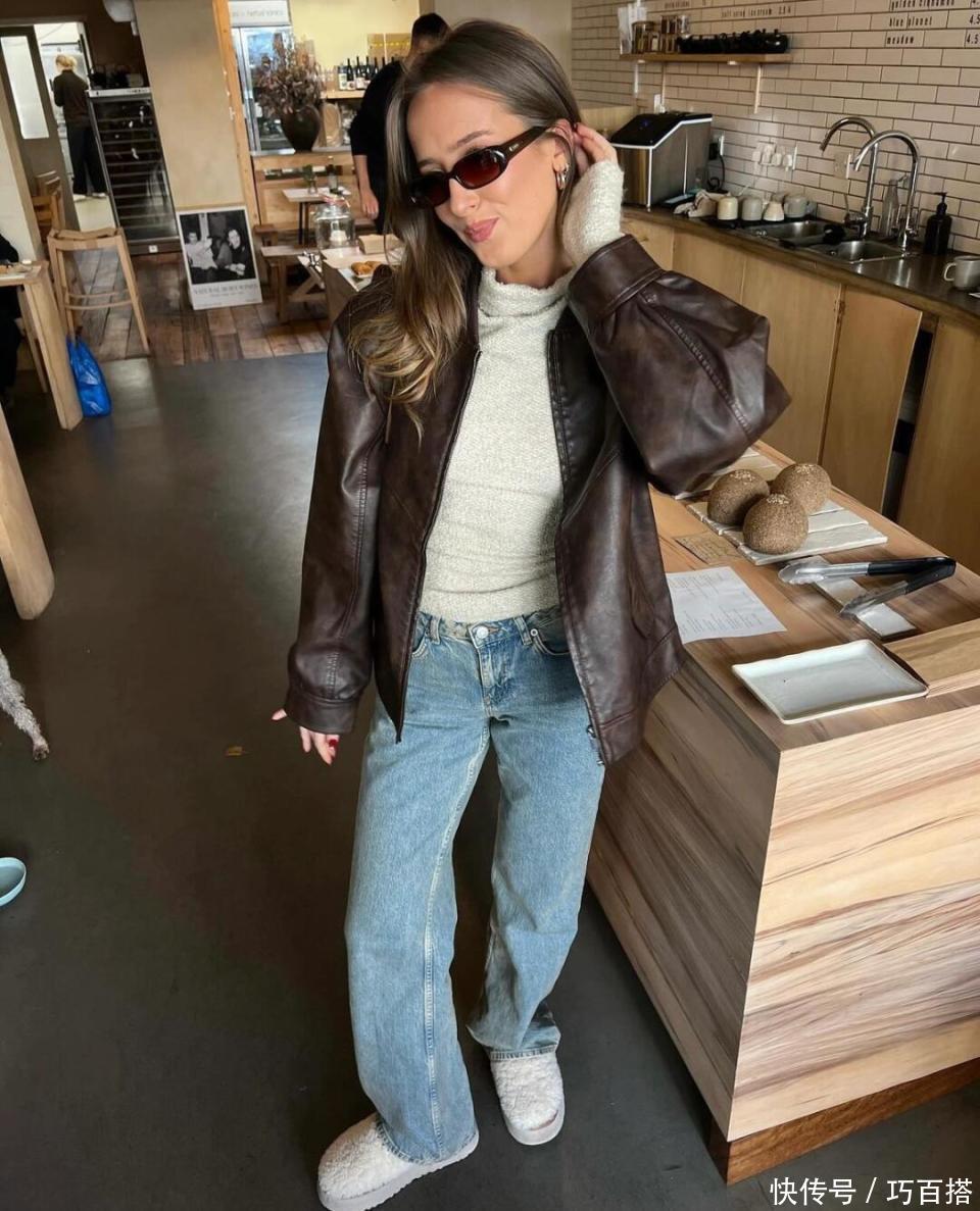 有它在的早春造型,基本不会踩雷,大家可以像博主一样选择极简风的搭配模式,白色小立领打底衫叠搭棕色皮衣,又前卫又复古,特别适合身材高挑有型的姐妹学习借鉴。不露皮肤也能展示女性魅力,没有高级元素也能穿出高级氛围。